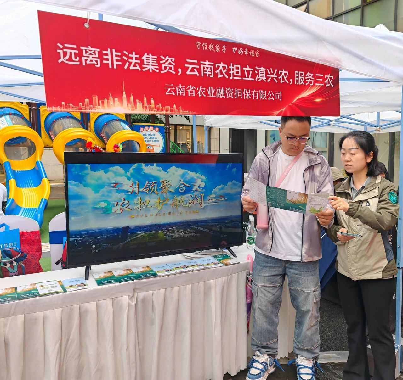 省農(nóng)擔(dān)公司設(shè)立專門咨詢臺(tái),通過(guò)發(fā)放業(yè)務(wù)宣傳折頁(yè),播放公司宣傳片,積極為參與群眾講解農(nóng)業(yè)融資擔(dān)保政策。用通俗易懂的語(yǔ)言,結(jié)合“虛假農(nóng)業(yè)項(xiàng)目融資”和“虛假擔(dān)保”等典型案例,為老百姓深度剖析非法集資分子利用群眾對(duì)政策不熟悉、渴望低成本融資等心理實(shí)施詐騙的套路;并現(xiàn)場(chǎng)提醒群眾:“選擇農(nóng)業(yè)擔(dān)保服務(wù),認(rèn)準(zhǔn)云南農(nóng)擔(dān)官方渠道”,引導(dǎo)群眾通過(guò)正規(guī)擔(dān)保機(jī)構(gòu)獲取金融服務(wù),切實(shí)保護(hù)自身合法權(quán)益。