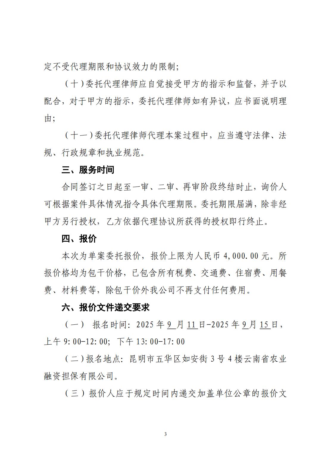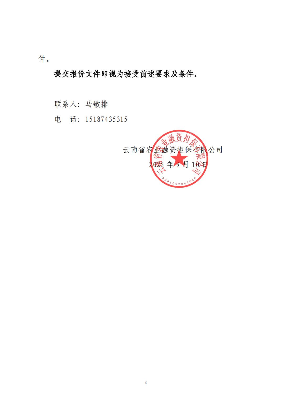 云南省農(nóng)業(yè)融資擔保有限公司詢價公告