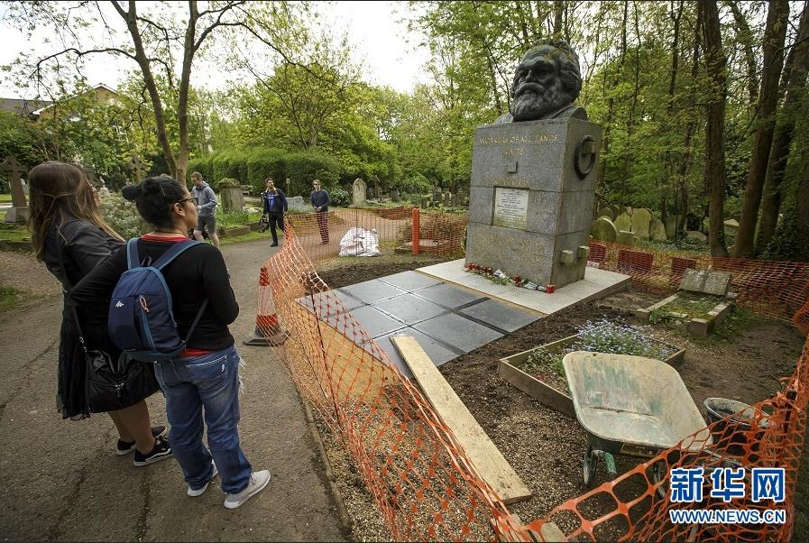 歷史長河奔流不息,真理之光穿越時空。1818年5月5日,德國小城特里爾,一代偉人馬克思誕生。200年后,世界東方。高擎馬克思主義的精神火炬,在習近平新時代中國特色社會主義思想指引下,中國共產(chǎn)黨正領(lǐng)導(dǎo)億萬人民書寫人類發(fā)展史上新的奇跡。這是2018年5月3日,在英國倫敦北部海格特公墓,人們來到正在進行維修的馬克思墓前參觀。新華社發(fā)(蒂姆·愛爾蘭攝)
