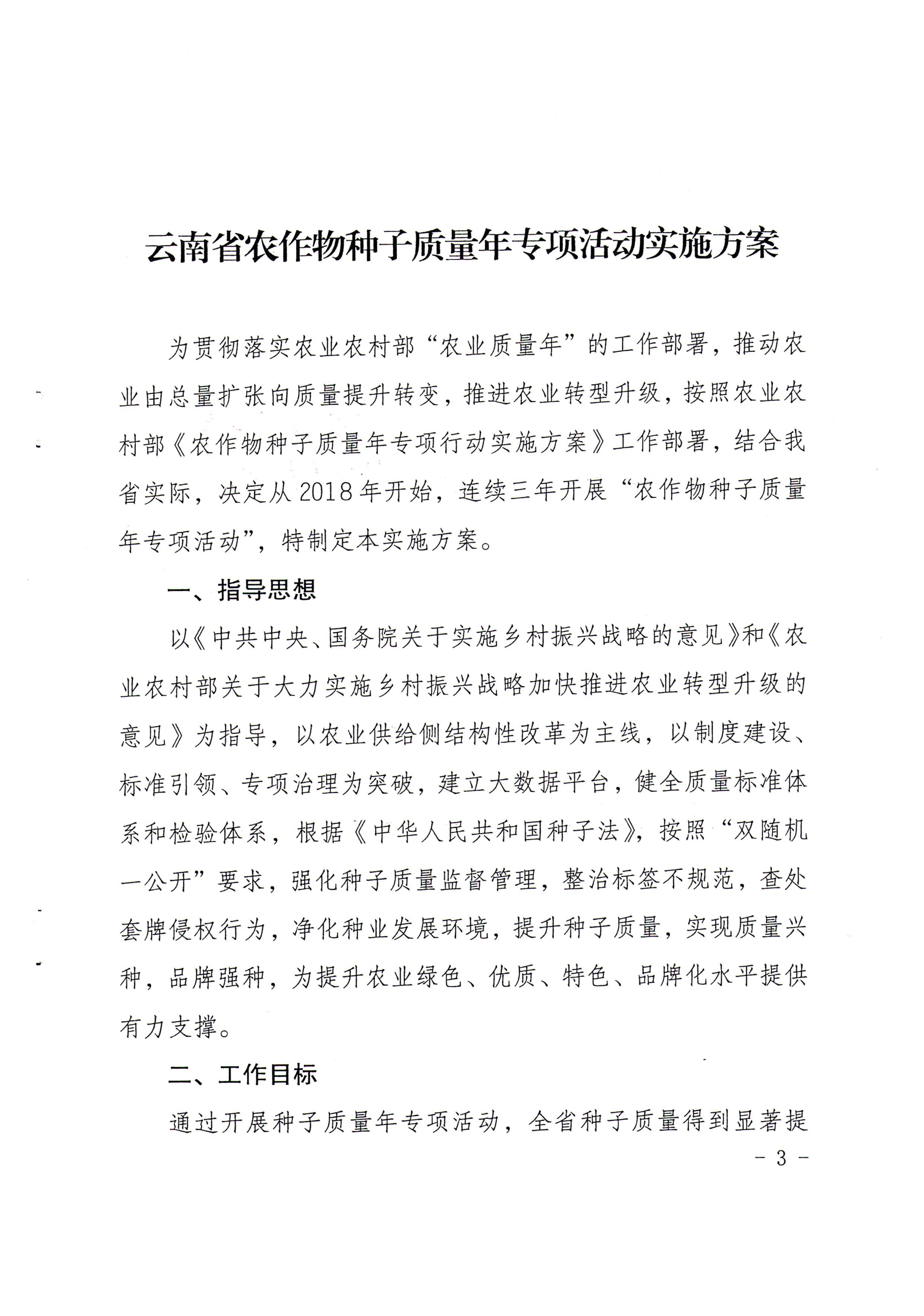 云南省農(nóng)業(yè)廳辦公室關(guān)于印發(fā)云南省農(nóng)作物種子質(zhì)量年專項(xiàng)活動(dòng)實(shí)施方案的通知