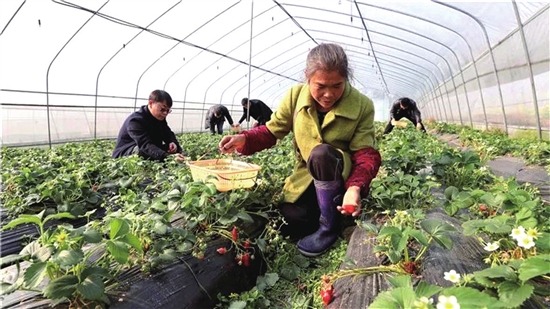 “以前我們的經(jīng)濟(jì)收入只能靠種植馬鈴薯、蕎麥、包谷,每年的收入少得可憐,自從政府引進(jìn)草莓種植,我們不僅有土地流轉(zhuǎn)的租金,還可以到草莓基地去打工,每天有100元的收入,一個月下來也有3000元左右的收入。多虧了政府,讓我們不僅可以在家門口打工,還能就近照顧家里,增加收入?!贝迕窀吲d蓮笑呵呵地說。