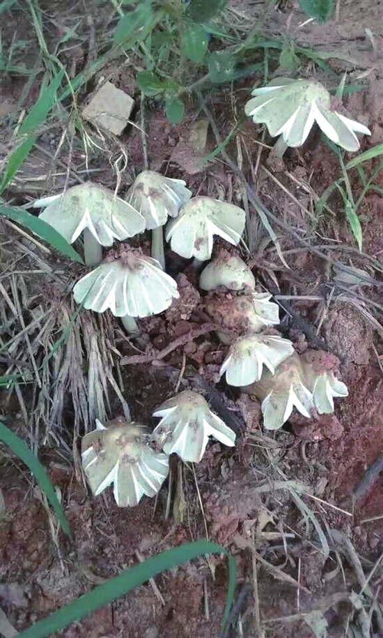 包包村副主任講了一個關于雞樅的故事:包包村的雞樅是獨雞樅,每窩只出一支雞樅,大的約七、八兩重,有鋤頭把粗,小的也有二、三兩重,有鐮刀把粗。雞樅開花的時候,猶如一頂美麗的小草帽散落在山間,遠遠看去讓人激動不已。沒有開花的雞樅像一顆火箭頭,高高聳立在草叢中。最開心的是撬雞樅窩,每當雞樅窩被打開,便會看到一個指頭大小、全身潔白的螞蟻王,領著成千上萬針頭大小的小白螞蟻在忙碌,它們做出像小山狀的“雞樅飯”,“雞樅飯”呈灰褐色,散發(fā)著一股清香,雞樅根就是從“雞樅飯”里長出來的。雞樅窩里還有一個橢圓型的“雞樅膽”,據(jù)說是一味尚好的中藥。