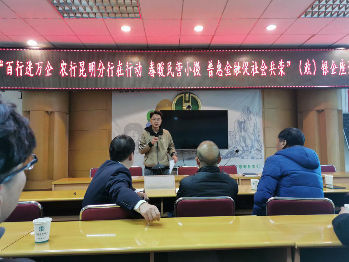 座談會(huì)上,尋甸辦事處段浩就公司情況,業(yè)務(wù)范圍、準(zhǔn)入條件做詳細(xì)介紹,段浩指出:“當(dāng)前小微企業(yè)普遍存在“融資難、融資貴”問題,深究其根源,主要集中在農(nóng)業(yè)小微企業(yè)抵押物不足及企業(yè)財(cái)務(wù)制度缺失兩個(gè)方面,導(dǎo)致企業(yè)一面無(wú)法順利融資,銀行無(wú)處發(fā)放貸款的矛盾突出,國(guó)家關(guān)于支持小微企業(yè)發(fā)展的優(yōu)惠政策,無(wú)法真正落到實(shí)處,為小微企業(yè)融資帶來(lái)便利。時(shí)下,解決這一問題,一是依靠企業(yè)規(guī)范自身經(jīng)營(yíng)管理制度,逐步健全財(cái)務(wù)制度;二是引入政策性擔(dān)保機(jī)構(gòu),化解抵押物不足的問題,其關(guān)鍵是打通政、銀、企、擔(dān)四方合作交流渠道,破解信息不對(duì)稱造成的合作無(wú)法實(shí)現(xiàn)的問題。目前,作為云南省唯一一家農(nóng)業(yè)信貸擔(dān)保機(jī)構(gòu),省農(nóng)擔(dān)公司堅(jiān)持財(cái)農(nóng)(40)號(hào)文件精神,按照貼農(nóng)、為農(nóng)、惠農(nóng)的宗旨,堅(jiān)持“專注服務(wù)農(nóng)業(yè),專注服務(wù)農(nóng)業(yè)適度規(guī)模經(jīng)營(yíng)主體”的政策定位,依托財(cái)政,積極為農(nóng)業(yè)適度規(guī)模經(jīng)營(yíng)主體提供融資擔(dān)保服務(wù),農(nóng)業(yè)銀行是五大行中農(nóng)業(yè)板塊的航空母艦,雙方在發(fā)展理念上高度契合,更應(yīng)該深化合作,以自身行動(dòng)共同為尋甸縣高原特色現(xiàn)代化農(nóng)業(yè)產(chǎn)業(yè)發(fā)展添磚加瓦?!?