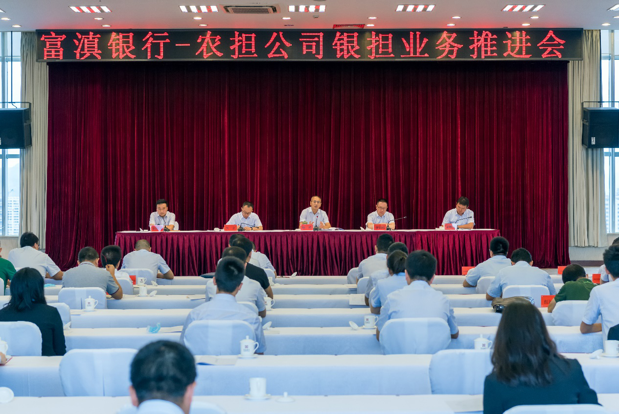 簽約儀式后,雙方召開銀擔(dān)業(yè)務(wù)推進(jìn)會,富滇銀行各分支機構(gòu),云南農(nóng)擔(dān)各辦事處主要負(fù)責(zé)同志參加會議。會議就當(dāng)前業(yè)務(wù)發(fā)展形勢進(jìn)行了分析,對下一步合作計劃做了全面部署安排。