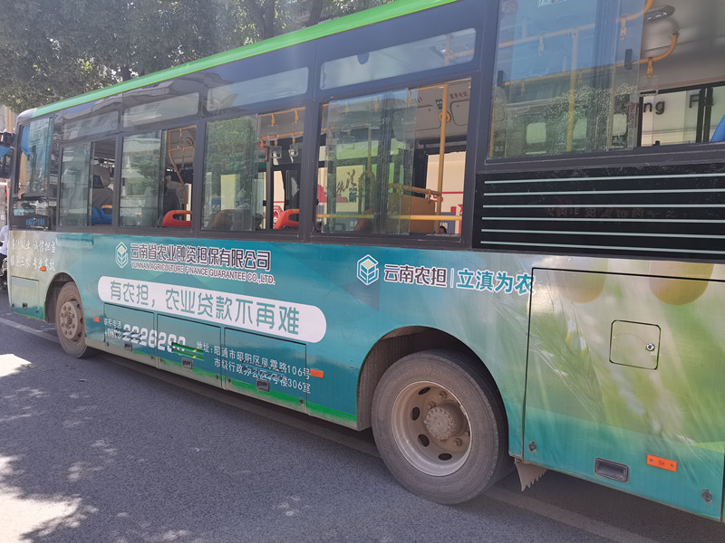 通過(guò)利用公交車(chē)人流量大,信息傳遞直觀(guān)和傳播速度快的特點(diǎn),昭通辦事處在10輛公交車(chē)兩側(cè)及車(chē)尾張貼醒目的公司宣傳廣告,以“有農(nóng)擔(dān),農(nóng)業(yè)貸款不再難”為宣傳口號(hào),向群眾最直觀(guān)地宣傳公司業(yè)務(wù)。