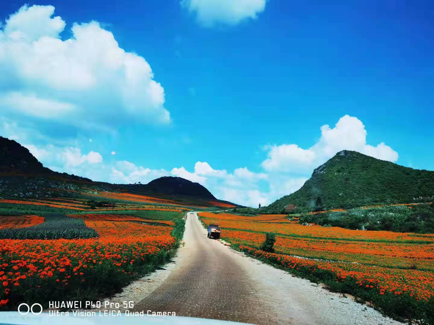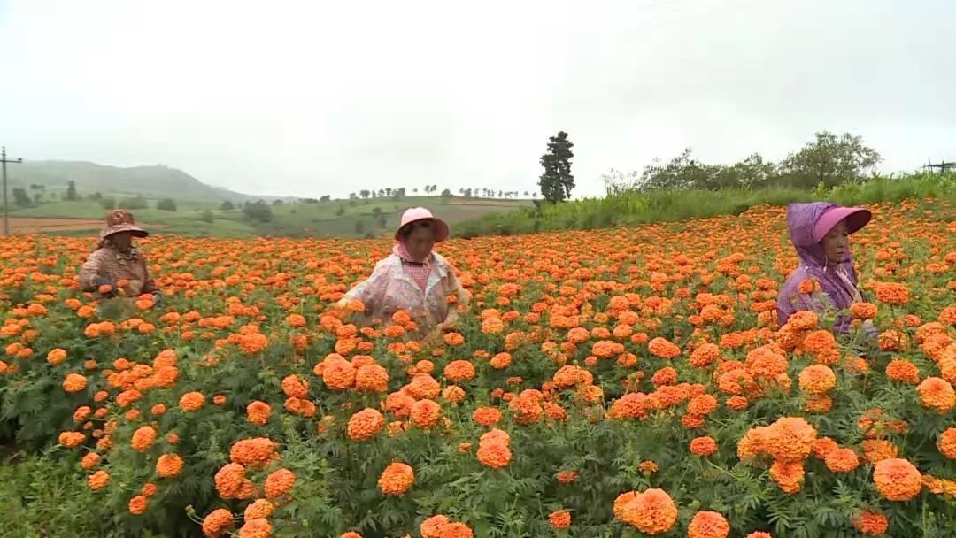 云南農(nóng)擔公司在??蛻羰烈患t生物科技有限公司,通過“公司+基地+農(nóng)戶”的發(fā)展模式,在石屏縣牛街鎮(zhèn)推廣種植萬壽菊1500余畝, 2020年云南農(nóng)擔擔保貸款200萬元,在省農(nóng)擔公司的支持下,緩解了收購季節(jié)資金壓力,種植規(guī)模也逐年增加。8月中旬,石屏縣牛街鎮(zhèn)千畝萬壽菊競相綻放,成片的萬壽菊花田一時間不僅成為了賞花的勝地,也讓當?shù)氐幕ㄞr(nóng)笑開了懷。