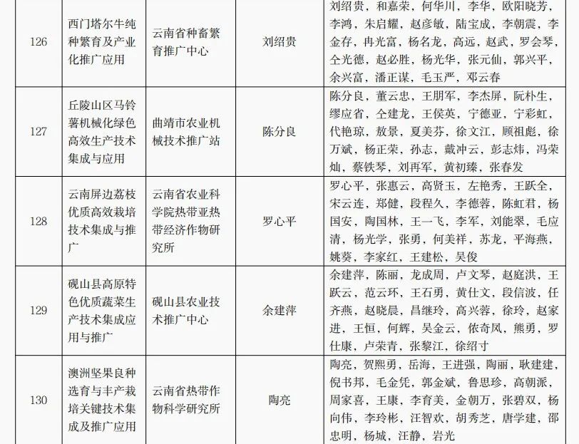 授予“湖南省早稻集中育秧技術(shù)推廣”等81個項(xiàng)目為農(nóng)業(yè)技術(shù)推廣成果獎一等獎,“循環(huán)水工程化智能化養(yǎng)殖關(guān)鍵技術(shù)示范應(yīng)用與推廣”等160個項(xiàng)目為農(nóng)業(yè)技術(shù)推廣成果獎二等獎,“河西肉牛生態(tài)健康養(yǎng)殖技術(shù)集成與示范”等160個項(xiàng)目為農(nóng)業(yè)技術(shù)推廣成果獎三等獎;授予吉林省伊通滿族自治縣景臺鎮(zhèn)綜合服務(wù)中心鄭立晨等500人農(nóng)業(yè)技術(shù)推廣貢獻(xiàn)獎;授予“大豆-玉米帶狀復(fù)合種植技術(shù)模式集成創(chuàng)新與示范推廣”等20個項(xiàng)目為農(nóng)業(yè)技術(shù)推廣合作獎(獲獎名單詳見附件)。