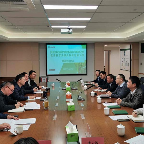 10月19日-20日,貴州農(nóng)擔(dān)公司董事長(zhǎng)羅道斌、副總經(jīng)理唐方宇、風(fēng)控總監(jiān)祖文周一行赴云南農(nóng)擔(dān)調(diào)研交流。