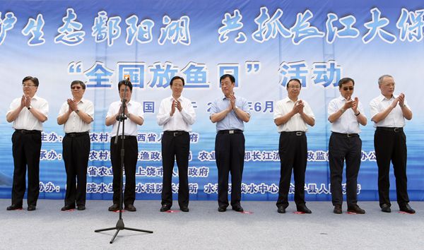 6月7日,作為“全國(guó)放魚日”主會(huì)場(chǎng)活動(dòng),農(nóng)業(yè)農(nóng)村部會(huì)同江西省人民政府在“長(zhǎng)江之腎”鄱陽湖聯(lián)合舉辦水生生物增殖放流活動(dòng),農(nóng)業(yè)農(nóng)村部部長(zhǎng)韓長(zhǎng)賦,江西省委書記、省長(zhǎng)劉奇等出席活動(dòng)。活動(dòng)期間,共向鄱陽湖放流四大家魚、河蟹和胭脂魚等水生生物苗種230余萬尾,還首次采用無線電遙測(cè)技術(shù),對(duì)鄱陽湖長(zhǎng)江江豚的晝夜活動(dòng)規(guī)律開展研究,為更好地保護(hù)和拯救長(zhǎng)江江豚提供科學(xué)支撐。