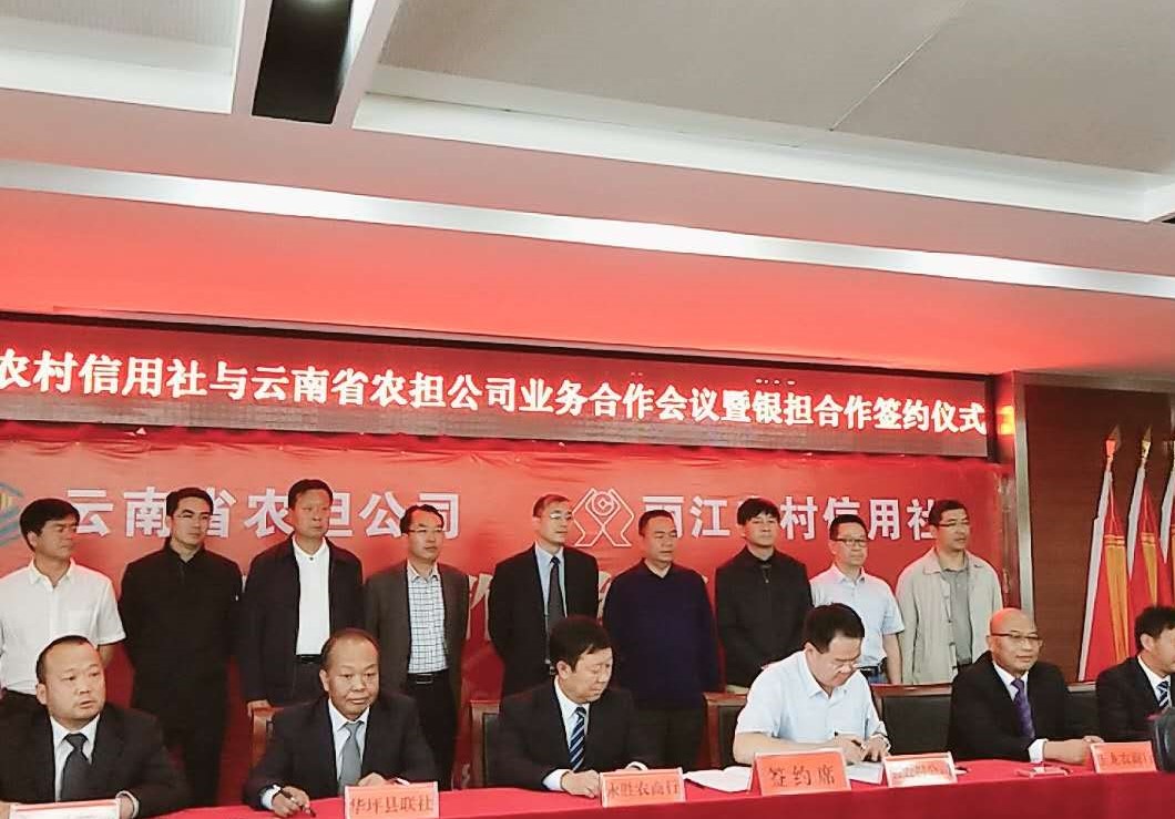 會(huì)議現(xiàn)場(chǎng),省農(nóng)擔(dān)公司總經(jīng)理杜開波同志分別與古城區(qū)、玉龍縣、永勝縣、寧浪縣、華坪縣五個(gè)縣區(qū)農(nóng)信社簽訂了戰(zhàn)略合作協(xié)議;與三家農(nóng)業(yè)新型經(jīng)營(yíng)主體,簽訂了相關(guān)信貸擔(dān)保合同。會(huì)后新聞媒體采訪了杜開波總經(jīng)理接和貸款農(nóng)戶,跟蹤報(bào)道放款過程。