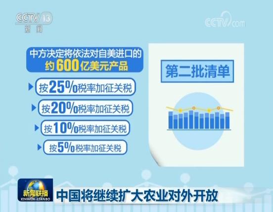 到目前為止,我國公布了兩批對自美進(jìn)口商品加征關(guān)稅清單。第一批清單,中方發(fā)布公告對美國500億美元商品加征25%的關(guān)稅,共涉及517項(xiàng)農(nóng)產(chǎn)品。第二批清單,中方?jīng)Q定將依法對自美進(jìn)口的約600億美元產(chǎn)品,按照25%、20%、10%、5%四檔不同稅率加征關(guān)稅,涉及387項(xiàng)農(nóng)產(chǎn)品。目前已對近九成自美進(jìn)口農(nóng)產(chǎn)品加稅。