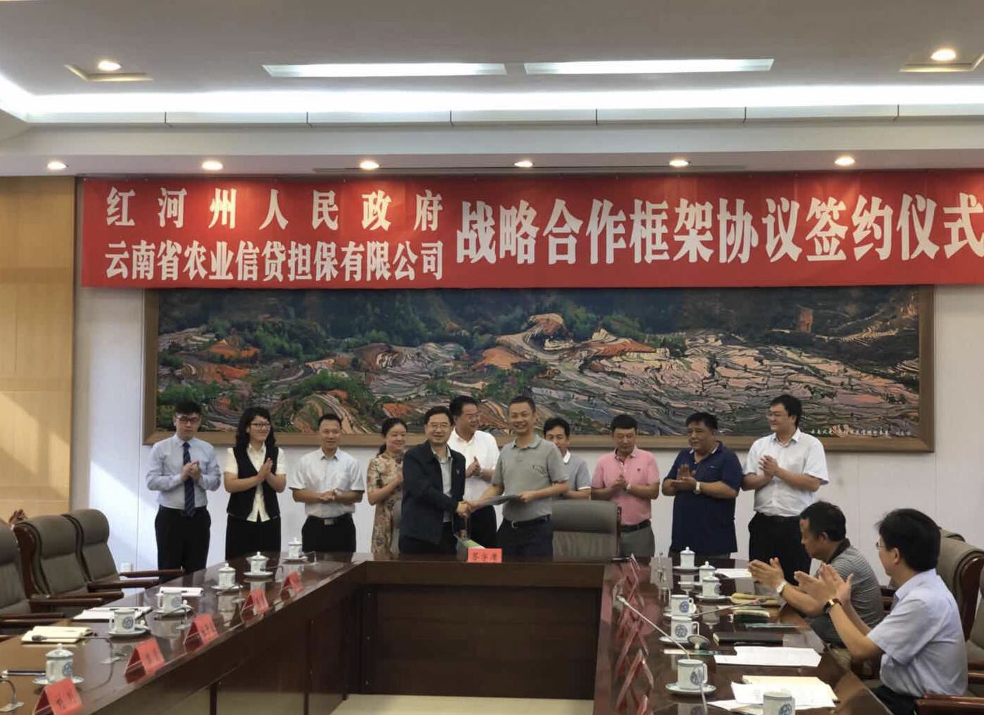 8月21日上午云南省農(nóng)業(yè)信貸擔保有限公司與紅河州人民政府戰(zhàn)略合作協(xié)議簽訂暨公司紅河辦事處、彌勒辦事處授牌儀式在紅河州會堂正式舉行。州人民政府副州長常斌、公司董事長郭影、總經(jīng)理杜開波及紅河州各相關(guān)部門、各銀行金融機構(gòu)及各縣市區(qū)農(nóng)業(yè)、財政部門參加了會議。
