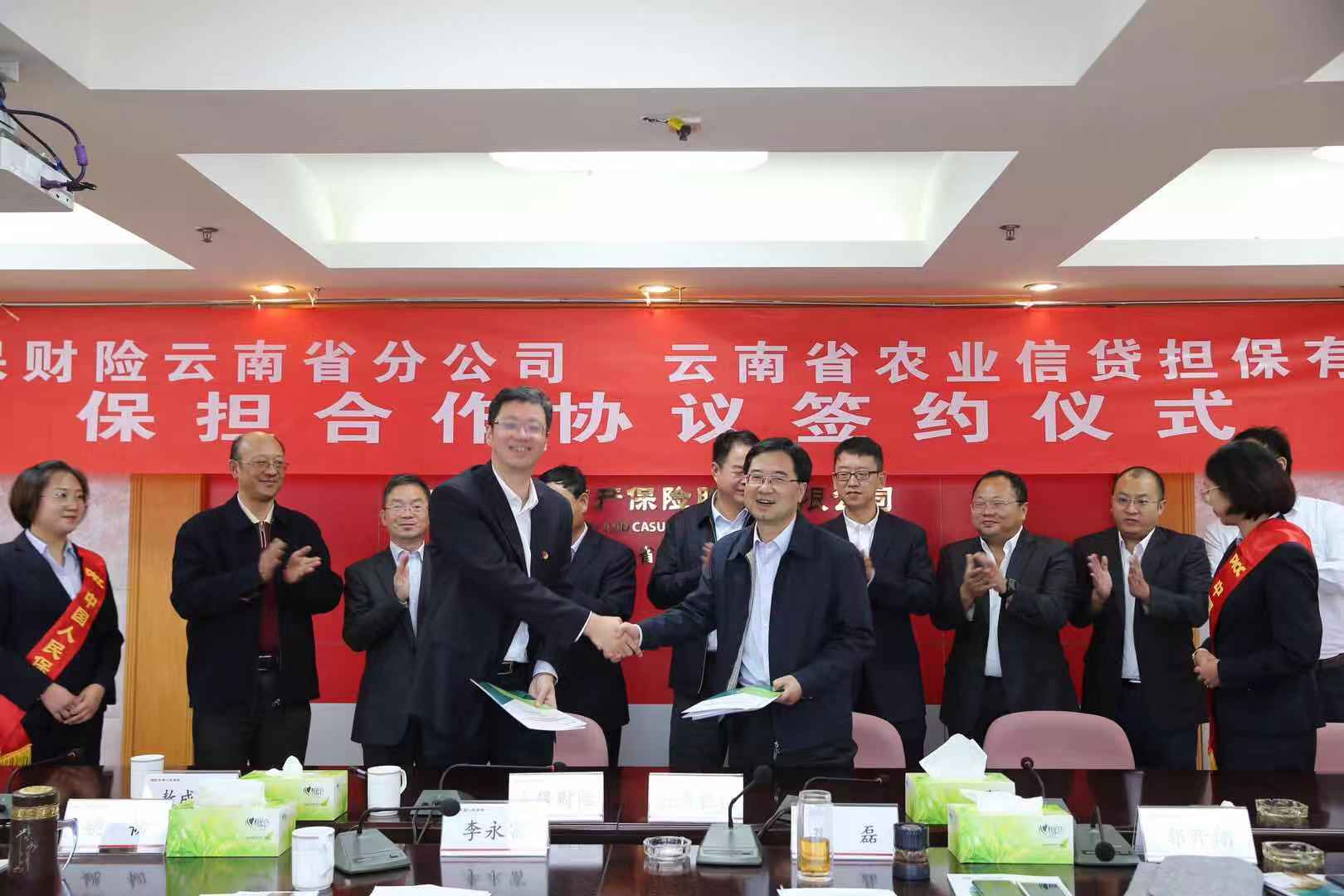 10月19日下午,公司與中國人保財險云南省分公司舉行了保擔合作協(xié)議簽約儀式。公司郭影董事長、杜開波總經(jīng)理、敖成碧副總經(jīng)理、人保財險云南省分公司黨委書記、總經(jīng)理雙磊、副總經(jīng)理李永富出席儀式,雙方有關(guān)部門負責人參加了活動。