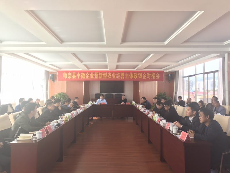 10月18日,曲靖辦事處受邀參加師宗縣新型農業(yè)經營主體暨小微企業(yè)金融工作服務推進會。會議由師宗縣人民銀行行長岳濤主持,參會人員包括師宗縣副縣長張硯昆、曲靖市人民銀行中心支行副行長李琰、師宗縣財政局、發(fā)改局、農業(yè)局、林業(yè)局、工信局、招商局等職能部門領導、師宗縣各金融機構負責人以及當地新型經營主體代表。會議上,曲靖辦事處業(yè)務員陳俊對公司成立背景、政策、業(yè)務開展情況及師宗地區(qū)的業(yè)務開展情況、合作流程等相關事宜進行了介紹。各銀行負責人對銀行貸款政策、存貸規(guī)模、帶動扶貧等情況進行了介紹,當地小微企業(yè)代表就經營情況進行了介紹,并提出了企業(yè)融資過程中遇到的難題。隨后政、銀、擔、企就如何解決小微企業(yè)融資問題進行探討,并要求各部門就相關政策及會議要求落實、落實、再落實!最后,張硯昆副縣長以及曲靖市人民銀行副行長李琰對本次金融推薦會給予了肯定并作出指示:各政府部門及各金融機構要充分認識小微企業(yè)的重要性,支持小微企業(yè)是全方位的,不單純的是金融支持,各部門要加大力度支持小微企業(yè)的發(fā)展壯大。本次會議提升了公司在師宗縣的知名度,為公司在師宗縣的業(yè)務擴展打下了堅實的基礎。