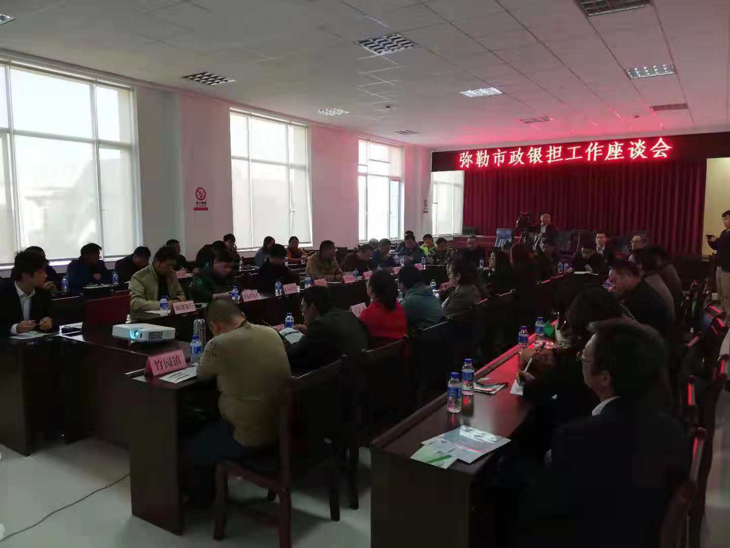 2018年11月28日,省農(nóng)擔(dān)公司彌勒辦事處負(fù)責(zé)人趙閆攜辦事處工作人員參加彌勒市政銀擔(dān)工作座談會(huì)。參會(huì)單位有彌勒市市政府、財(cái)政局、農(nóng)科局、市人民銀行、郵儲(chǔ)銀行、各鄉(xiāng)鎮(zhèn)負(fù)責(zé)人等30余家彌勒市中小微企業(yè)代表。