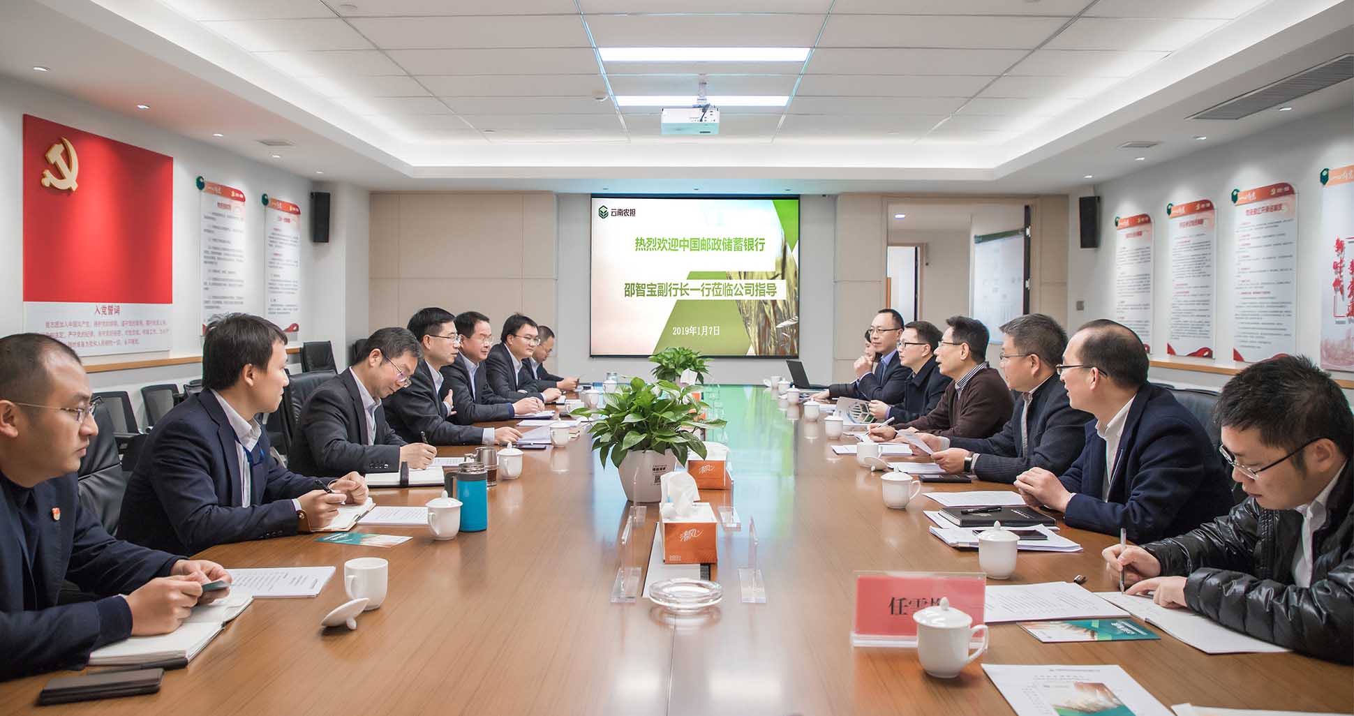 1月7日,中國郵政儲蓄銀行副行長邵智寶在郵儲銀行云南省分行唐華建行長陪同下到云南省農(nóng)擔(dān)公司調(diào)研,雙方就加強(qiáng)銀擔(dān)合作進(jìn)行深入交流座談。