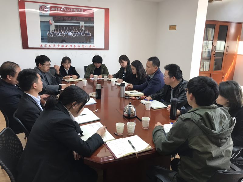 2019年2月12日下午,農(nóng)擔(dān)一部負(fù)責(zé)人劉川率曲靖辦事處全體員工赴曲靖會(huì)澤長(zhǎng)江村鎮(zhèn)銀行交流學(xué)習(xí)。曲靖市會(huì)澤長(zhǎng)江村鎮(zhèn)銀行副行長(zhǎng)馬發(fā)寬、副行長(zhǎng)左儒林、業(yè)務(wù)部負(fù)責(zé)人代穎、薛??怠⑽①J中心負(fù)責(zé)人蔣紅浪、風(fēng)險(xiǎn)管理部負(fù)責(zé)人饒文艷及辦公室負(fù)責(zé)人譚明秀等出席座談會(huì)。