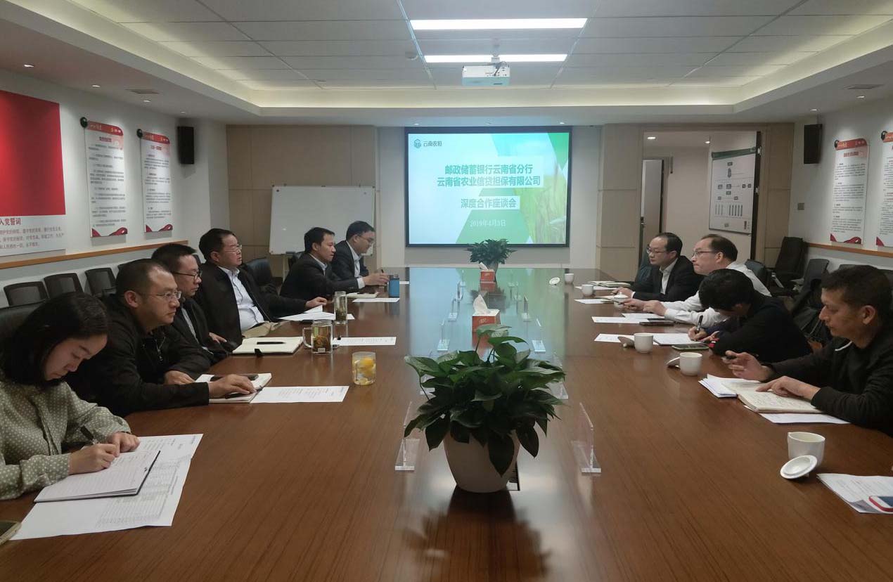 2019年4月3日下午,郵儲銀行云南省分行孟浩副行長率三農(nóng)金融部、授信管理部、小企業(yè)金融中心、公司業(yè)務(wù)部到云南農(nóng)擔公司座談,公司杜開波總經(jīng)理、廖寅皓副總經(jīng)理及業(yè)務(wù)、風(fēng)控,機構(gòu)等部門參加座談。會上雙方就業(yè)務(wù)辦理效率及保后監(jiān)管等方面內(nèi)容交換意見,并對下一步工作方向達成一致。