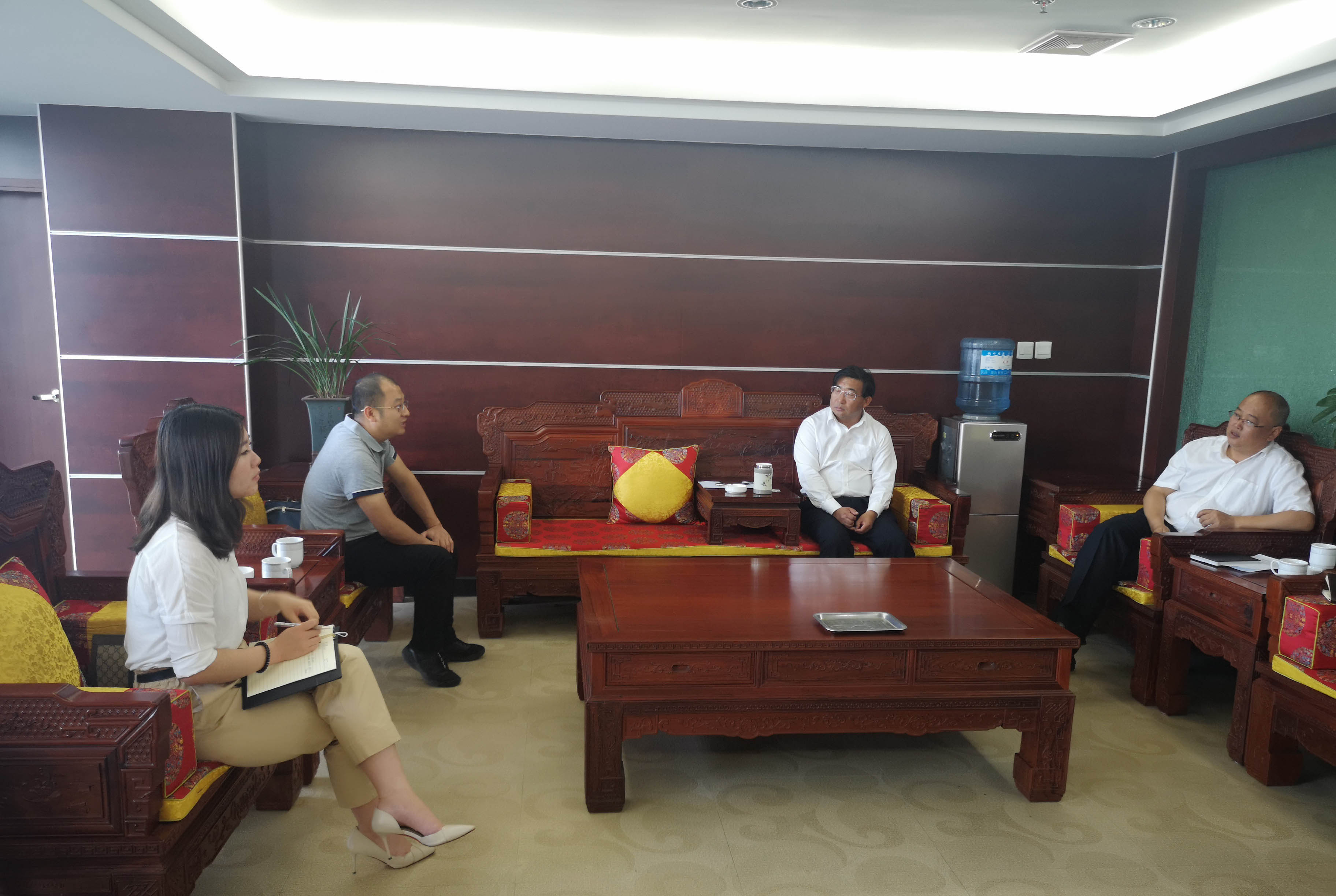 2019年5月7日,農(nóng)擔(dān)二部負(fù)責(zé)人賈萬文、保山辦事處業(yè)務(wù)主管胡幫露一行到騰沖農(nóng)村商業(yè)銀行開展座談會,與騰沖農(nóng)村商業(yè)銀行董事長文文、公司業(yè)務(wù)部總經(jīng)理趙明興進行了交流。