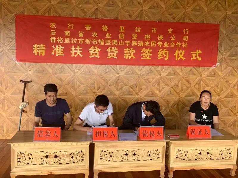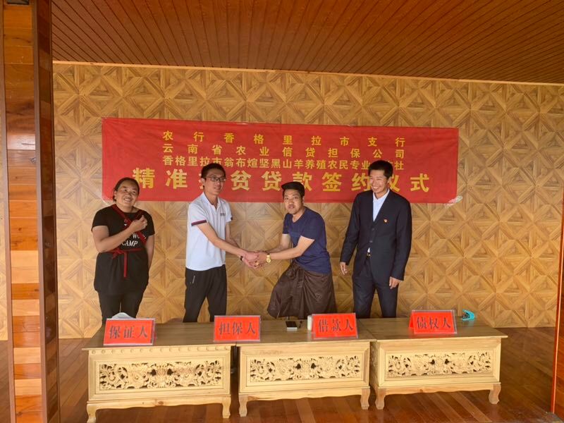 2019年6月25日,云南省農(nóng)業(yè)信貸擔(dān)保有限公司維西辦事處工作成員與中國(guó)農(nóng)業(yè)銀行股份有限公司迪慶州分行相關(guān)負(fù)責(zé)人及領(lǐng)導(dǎo)一行到達(dá)香格里拉市五境鄉(xiāng)倉(cāng)覺村,與翁布煊堅(jiān)黑山羊養(yǎng)殖農(nóng)民專業(yè)合作社簽署合同,由云南農(nóng)擔(dān)公司進(jìn)行政策擔(dān)保,為香格里拉市翁布煊堅(jiān)黑山羊養(yǎng)殖農(nóng)民專業(yè)合作社發(fā)放擔(dān)保貸款200萬(wàn)元。
