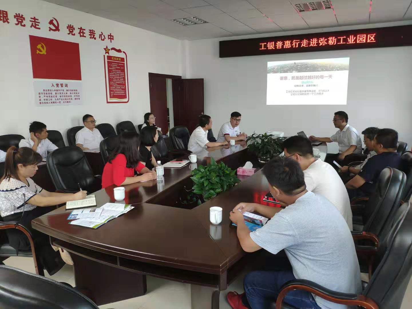 8月21日,為搭建銀擔(dān)企合作平臺,促進(jìn)彌勒工業(yè)園區(qū)涉農(nóng)企業(yè)健康發(fā)展,緩解涉農(nóng)企業(yè)融資難問題,加強(qiáng)銀擔(dān)企溝通交流,彌勒辦事處業(yè)務(wù)主管趙閆攜業(yè)務(wù)人員菊志俊受邀參加了工商銀行彌勒市支行組織的“工銀普惠行走進(jìn)彌勒工業(yè)園區(qū)”座談會。