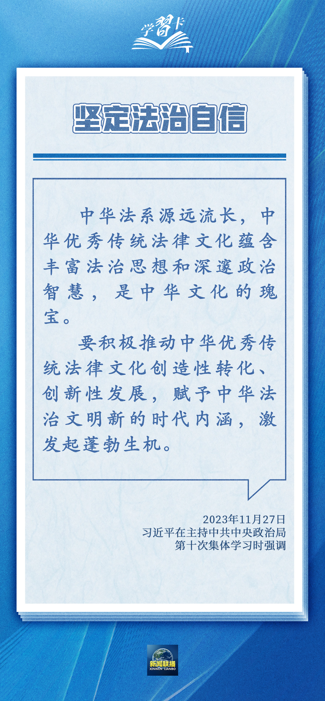 圍繞依憲治國、依憲執(zhí)政,習(xí)近平總書記多次在不同場合強調(diào),憲法是黨和人民意志的集中體現(xiàn),豐富和發(fā)展了中國特色社會主義法治理論,也為推進(jìn)國家治理體系和治理能力現(xiàn)代化指明了根本路徑和努力方向。一起學(xué)習(xí)→