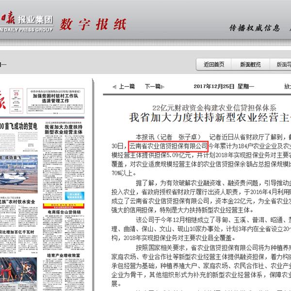 云南省加大力度扶持新型農(nóng)業(yè)經(jīng)營主體 22億元財(cái)政資金構(gòu)建農(nóng)業(yè)信貸擔(dān)保體系